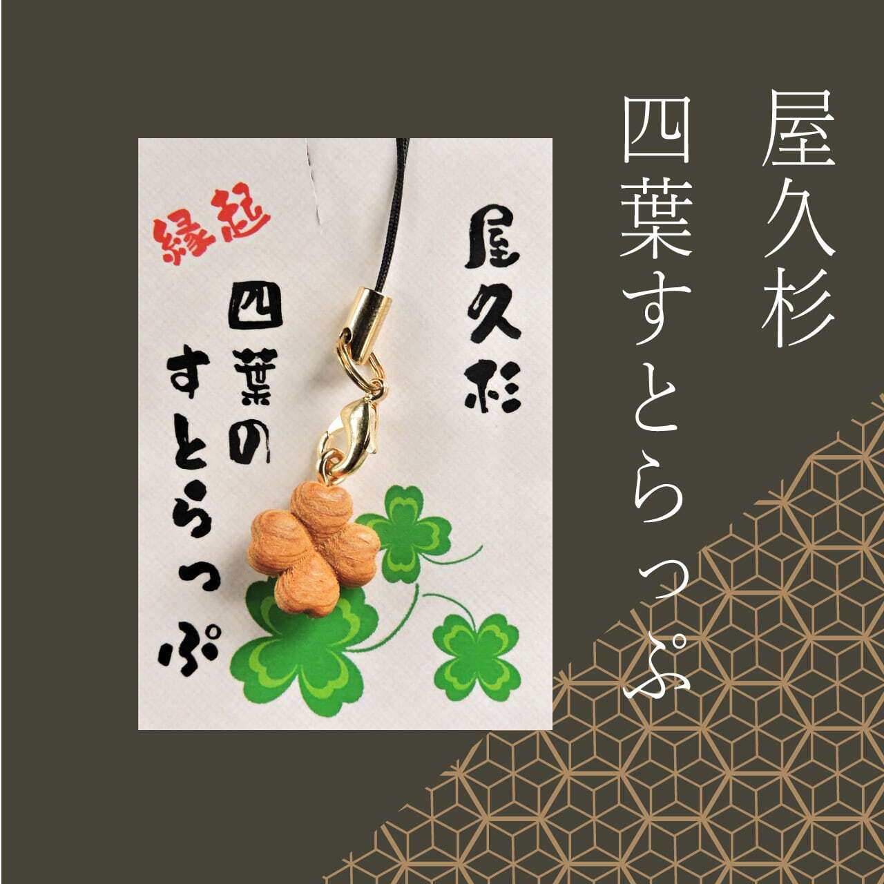 屋久杉の温もり感じる、かわいいサイズの四葉のクローバーストラップ。