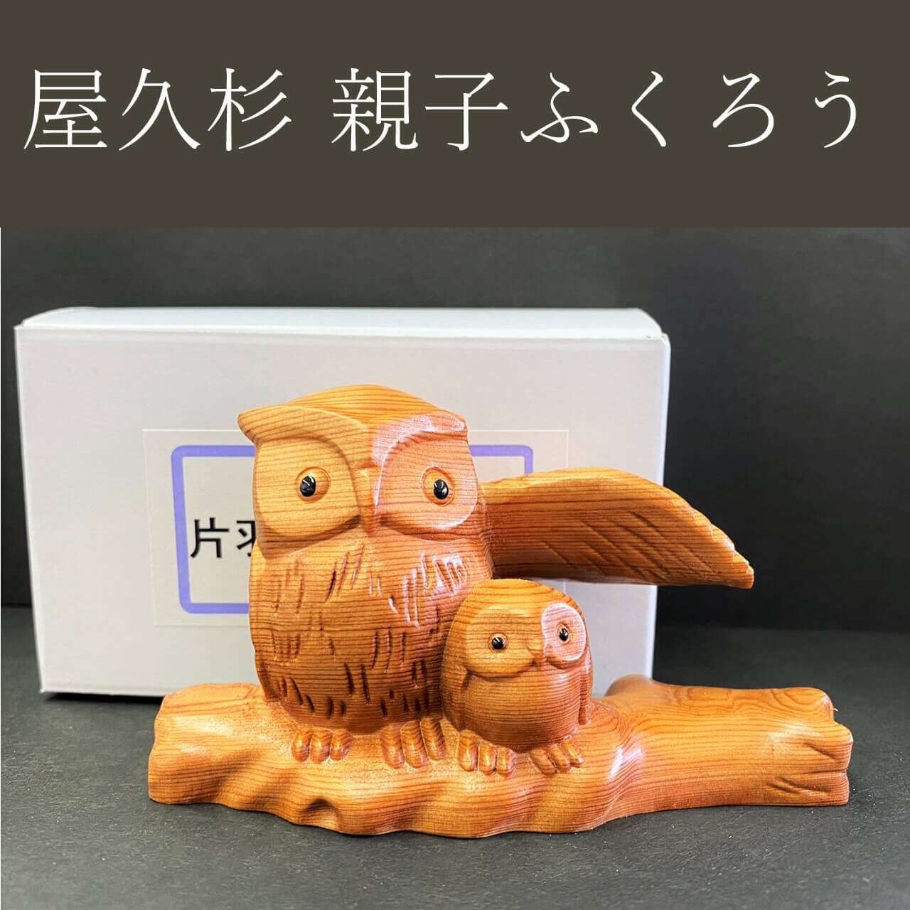 【国産 屋久杉 】 癒しの親子 ふくろう 梟 不苦労 化粧箱付 【縁起物 インテリア 置物 オブジェ 屋久島】