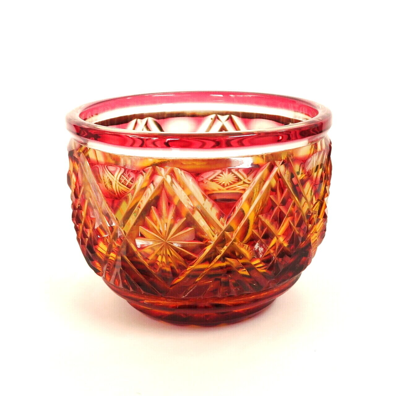 【高級 手作り】 猪口 大 麻菊 金赤アンバー グラス ガラス 酒器 【薩摩切子 鹿児島 伝統工芸品 ツジガラス工芸 職人 辻俊幸】