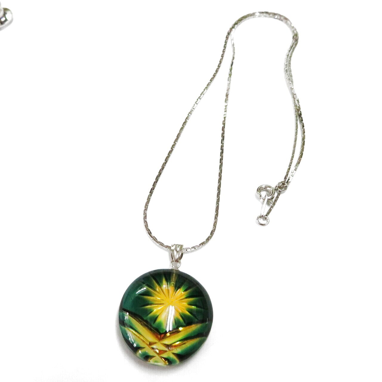 【煌めきのサンド 高級 手作り】丸型 グリーンアンバー 緑色 ペンダント ネックレス アクセサリー 【薩摩切子 鹿児島 伝統工芸品 ツジガラス工芸 職人 辻俊幸】